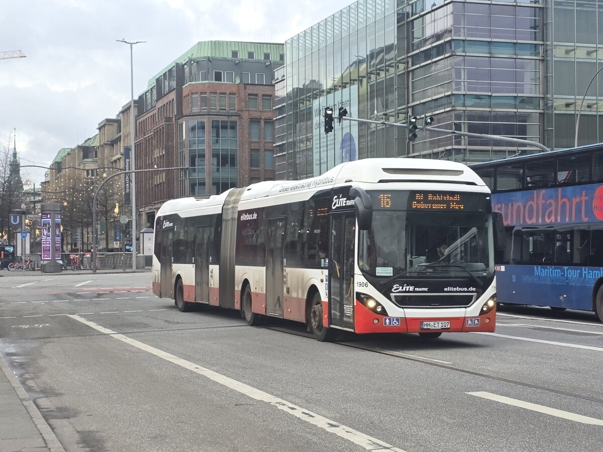 Elite 1906 (HH-ET 107 / ex. HHA 7479) auf der 16 nach Bf. Rahlstedt (Doberaner Weg) an der Haltestelle Hauptbahnhof/Steintordamm. 30.November 2025 Klöpfer