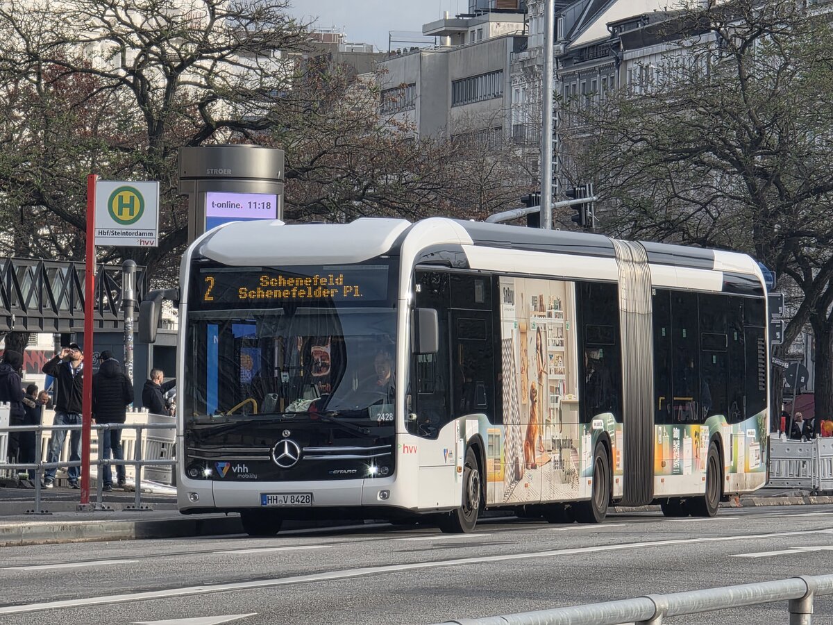 VHH 2428 (HH-V 8428) mit Werbung für : SoBuy- Living Nature. auf der 2 Richtung U/S Berliner Tor. an der Haltestelle Hauptbahnhof/Steintordamm. 30.November 2025